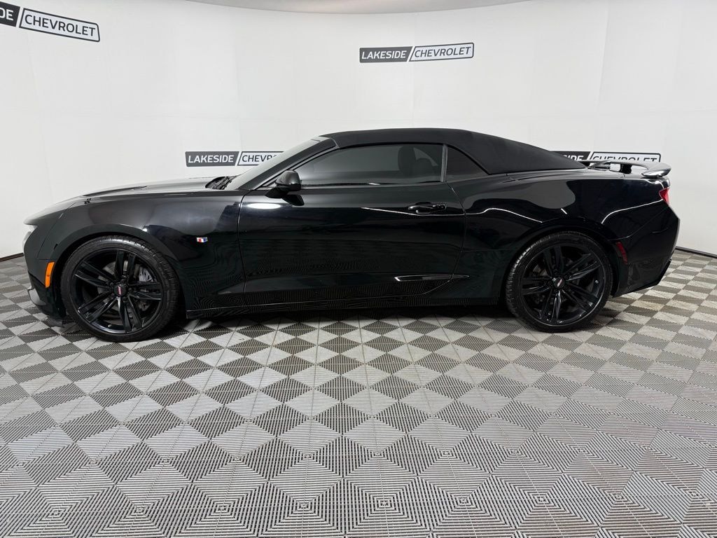 2018 Chevrolet Camaro SS 2SS convertible is now at Lakeside. This Chevy sports car has the 6.2L V8 engine, 8-Speed Automatic transmission, soft black convertible top that power folds, memory seats, ash gray leather interior, heads up display, BOSE premium audio, remote starter, heated steering wheel, heated front seats, rear parking camera, and rear parking sensors. 17/27 City/Highway MPG